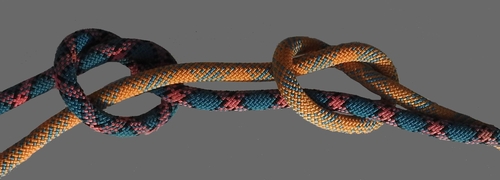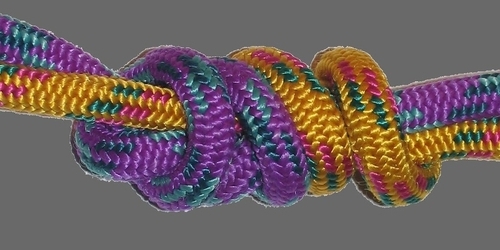 ![]() Sauber gelegt unterscheidet er sich nicht von falsch und richtig. Verwendet wird er als Seilverbindungsknoten und ich verwende diesen Knoten immer noch gern. |